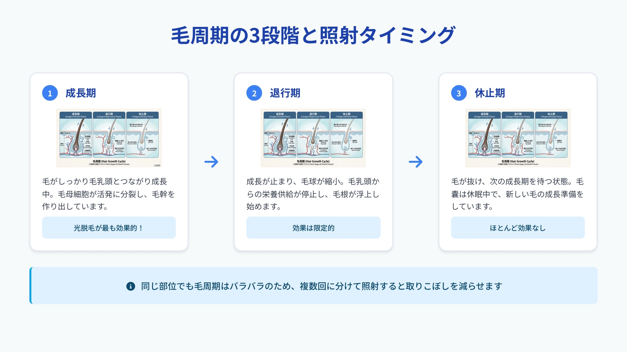 脱毛効果を最大限に引き出すには、「毛周期」を理解することが重要です。
